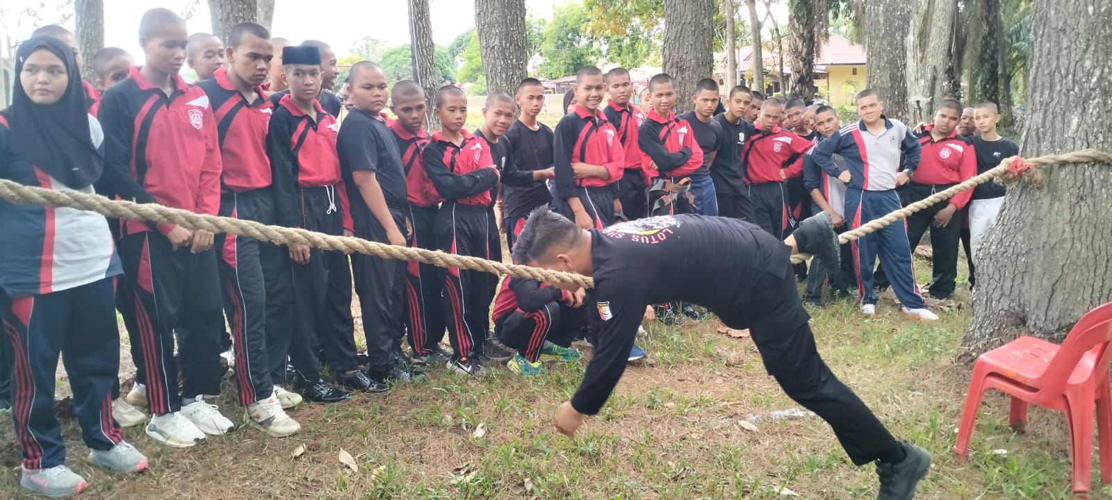 Sejak pagi, rangkaian kegiatan berjalan dengan teratur. Para siswa terlebih dahulu melaksanakan ibadah Sholat Jumat, kemudian dilanjutkan dengan makan siang bersama sebagai wujud kebersamaan dan kekeluargaan. Setelah itu, para instruktur memberikan materi penting tentang Search And Rescue (SAR), meliputi pengenalan alat-alat SAR, teknik dasar membuat simpul, hingga gerakan merayap tambang.