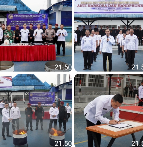 Anginbeliung.com | Medan – Rumah Tahanan Negara (Rutan) Kelas I Medan, menggelar deklarasi komitmen Zero Halinar untuk mewujudkan wilayah yang bersih dari adanya peredaran alat komunikasi (handphone) dan pungutan liar (pungli), serta peredaran narkoba di lapangan upacara rutan, pada Sabtu Sore (31/05/2025).