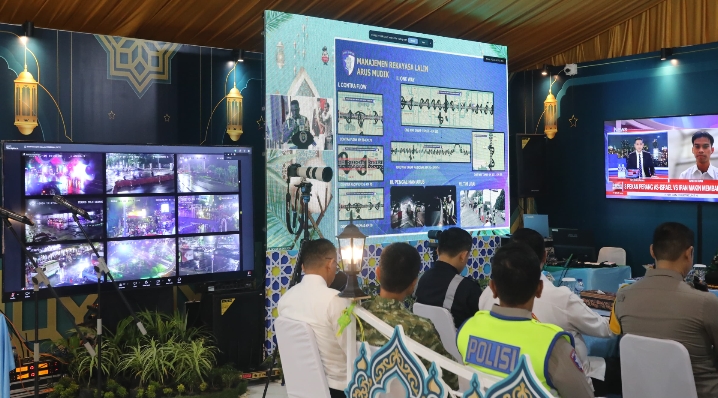 Pemantauan ini terhubung secara virtual dengan berbagai wilayah di Indonesia, termasuk Polda Metro Jaya yang dihadiri Wakapolri Komjen Pol. Dedi Prasetyo, Kepala BMKG, Kepala BNPT, serta Kakorlantas Polri Irjen Pol. Agus Suryonugroho.