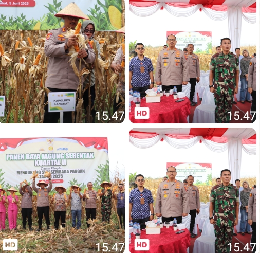 Anginbeliung.com | Polres Langkat- Dalam rangka mendukung program ketahanan pangan nasional, Kepolisian Resor (Polres) Langkat menggelar kegiatan Panen Raya Jagung Kuartal II 2025, bertempat di Lahan yayasan Bhayangkara Kelurahan Kwala Bingai Kecamatan. Stabat Kabupaten Langkat.Kamis, (05/05/2025) pukul 10.45 wib,