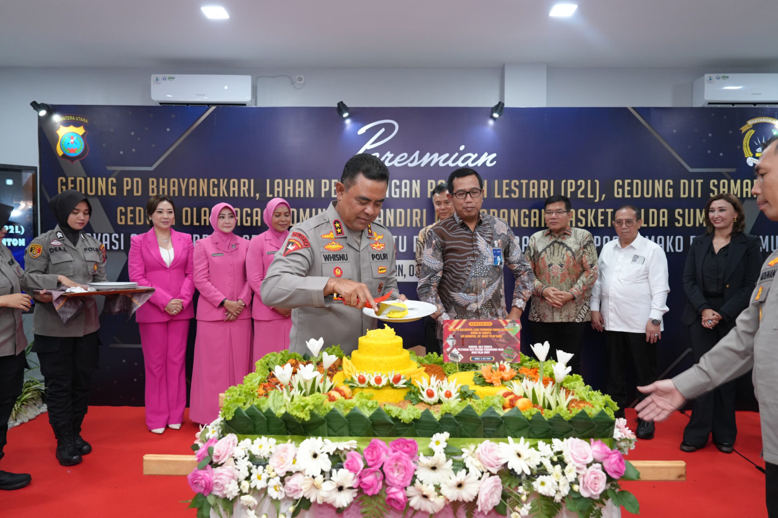 Hal itu ditandai dengan peresmian empat fasilitas baru, yakni Gedung Pengurus Daerah Bhayangkari, Gedung Direktorat Samapta, Gedung Olahraga (GOR) Bulutangkis, serta Lapangan Basket di lingkungan Mapolda Sumut, Kamis (03/07/2025).