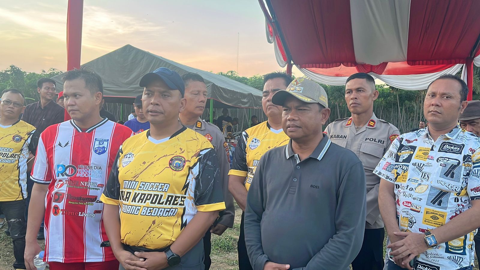 Dalam sambutan, Diacara dengan foto bersama antara Kapolres Sergai, Bupati Sergai, Wakil Bupati H. Adlin Umar Yusri Tambunan, S.T., M.S.P., serta para tamu undangan lainnya. Momen simbolis pembukaan ditandai dengan tendangan pertama oleh Kapolres Sergai yang didampingi langsung oleh Bupati Sergai, diikuti sorak antusias para peserta dan penonton. Sebagai laga pembuka, pertandingan seru tersaji antara tim Jurnalis FC melawan AEP FC yang menandai dimulainya turnamen Mini Soccer Piala Kapolres Serdang Bedagai Tahun 2025.