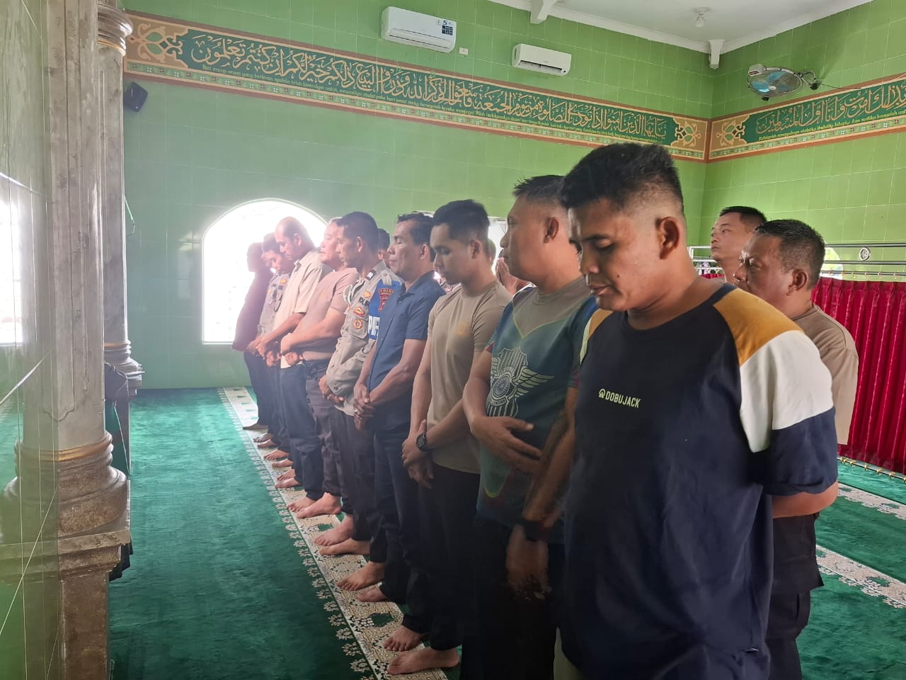 Turut Hadir oleh, Wakapolres Sergai Kompol Mukmin Rambe, SH, Kabag Ops Polres Sergai Kompol Hendro Sutarno, Kasat Intel Polres Sergai AKP Siswoyo, Kasat Lantas Polres Sergai AKP Fuzul Arasy, Aiptu Junaidi (Pengurus BKM Masjid), Personel Polres Sergai, Imam, Ustadz Hidayatullah, S.H.I., Jama’ah total ±80 Orang. (Wilson Hutauruk)