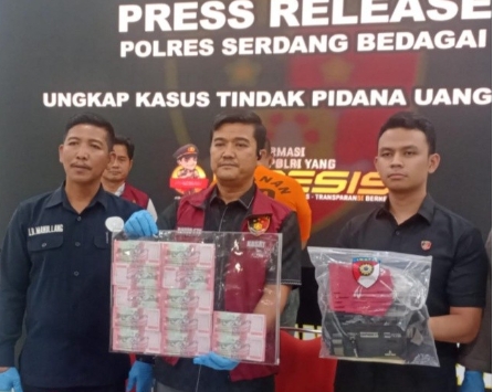 Anginbeliung.com | Serdang Bedagai – Polres Serdang Bedagai (Sergai), Satreskrim Iptu Binrod Situngkir Ungkap Kasus Tindak Pidana Uang Palsu dari Pelaku RT Dusun II Desa Pon, Kecamatan Sei Bamban, Kabupaten Sergai. Dalam Press Release, Yang Digelar di Aula Patriatama polres Sergai, Selasa (30/12/2025)