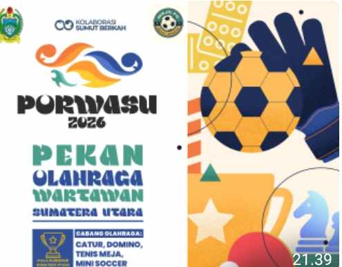 Anginbeliung.com | Medan – Sebanyak 320 jurnalis dari berbagai daerah di Sumatera Utara dipastikan ambil bagian dalam Pekan Olahraga Wartawan Sumatera Utara (Porwasu) 2026 Piala Gubernur Sumatera Utara yang akan digelar pada 7 hingga 12 April 2026. Ajang ini mempertandingkan empat cabang olahraga, yakni mini soccer, domino (dam batu), tenis meja, dan catur.