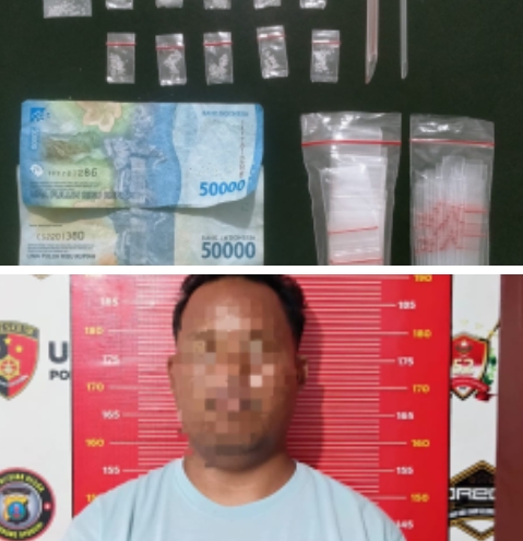 Barang Bukti yang diamankan seperti, Uang Rp. 100.000,- (seratus ribu rupiah), 11 (sebelas) helai plastik klip transparan beriskan butiran kristal diduga sabu, 2 (dua) buah skop yang terbuat dari pipet, 2 (dua) bungkus plastik klip transparan kosong